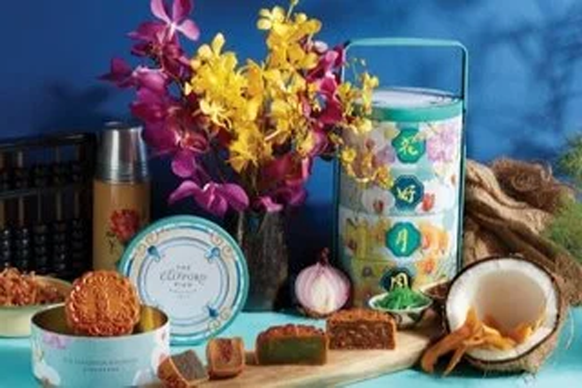 The Clifford Pier Mooncake Tingkat is a nostalgic nod to the bustling hawker scene that once surrounded Clifford Pier in bygone eras past. Each tiffin carrier contains four baked mooncakes: the mixed nuts with satay sauce, the salted lotus with hae bee hiam, the assam lotus with mango and the milder aromas of the pandan coconut with chendol.
