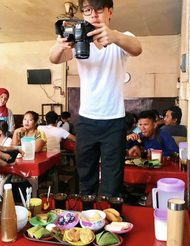 It all started at home in Singapore. When he was in primary school, he became fascinated with Filipino food. He would find a pot of sinigang (sour and savoury soupy stew) waiting for him after school. His family employed domestic helpers from different parts of the Philippines. They introduced him to the wonders of salted duck eggs and tomato salads, bagoong (salty shrimp paste), chicken adobo (stew spiced with vinegar, soy sauce, pepper and garlic), menudo (a dish with pork belly, liver, carrots, and potato stewed in tomato sauce), tortang talong (char-grilled eggplant omelette), suman (sticky rice dessert) and so much more.