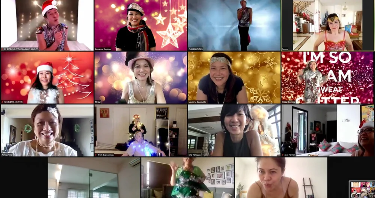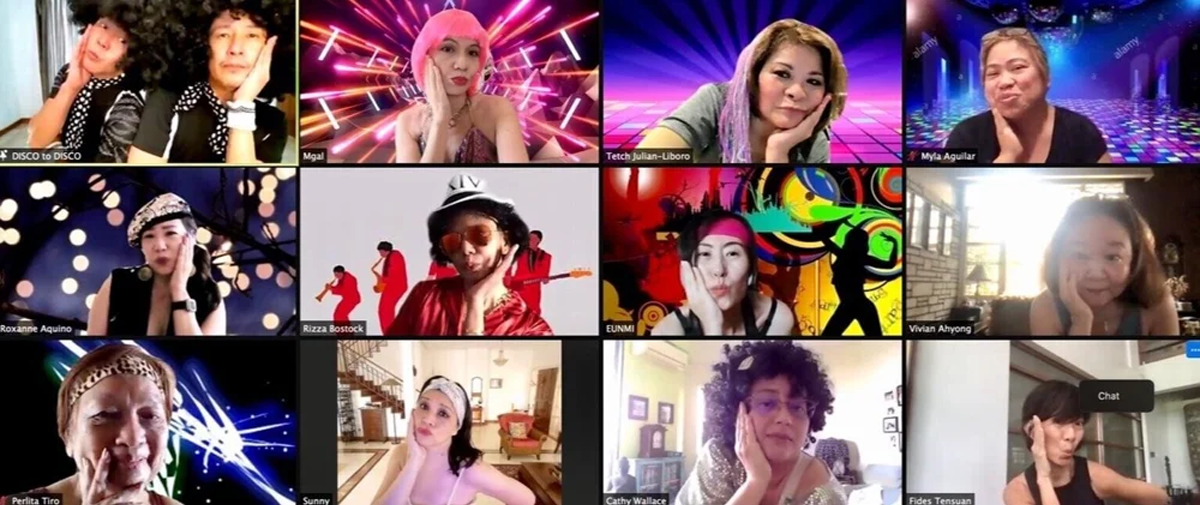 Some Divas have also commissioned Erich and Miko to do special online parties for their birthdays. It was a glitzy Yuletide evening when 49 of my friends from 11 countries and 9 time zones donned gold, silver and glitter in a birthday session, with calls to make it an annual event. Michelle surprised her guests by performing with the duo. Tita Lil had a “Staying Alive” party to celebrate her 80-something birthday. Rizza did an amazing fund-raiser with 64 guests dancing for three charities.