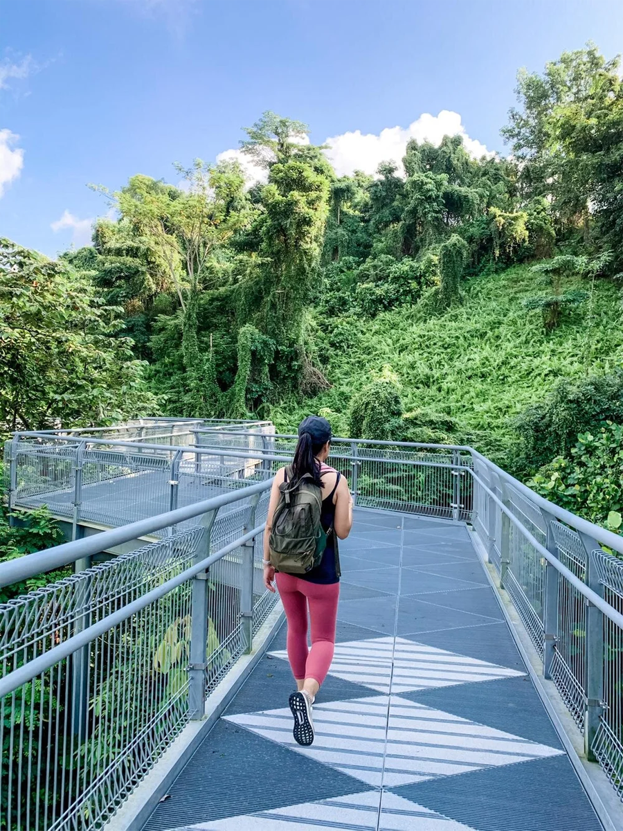 Another picturesque and step-free elevated walk is the Forest Walk. The elevated floors of the walkway is 1.3km long and triangular shaped, architecturally inspired by the leaves of the fast growing “Mile-a-Minute” plant (Mikania micrantha).