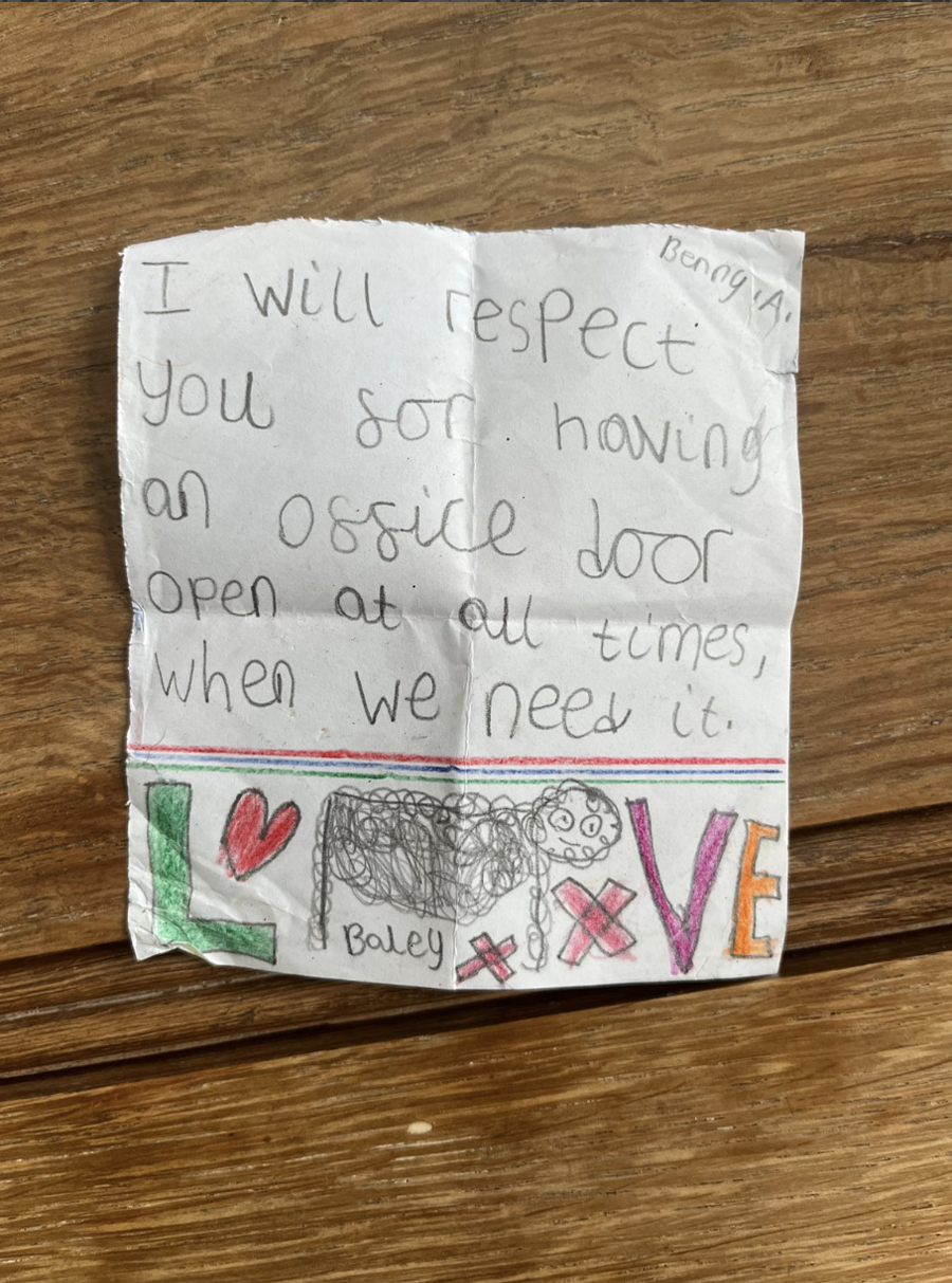 “When I was younger, values were taught at home around the dining table. Perhaps that doesn’t happen as much now with the pressures of modern life. So we teach that in school – what does Respect feel like, look like etc.”